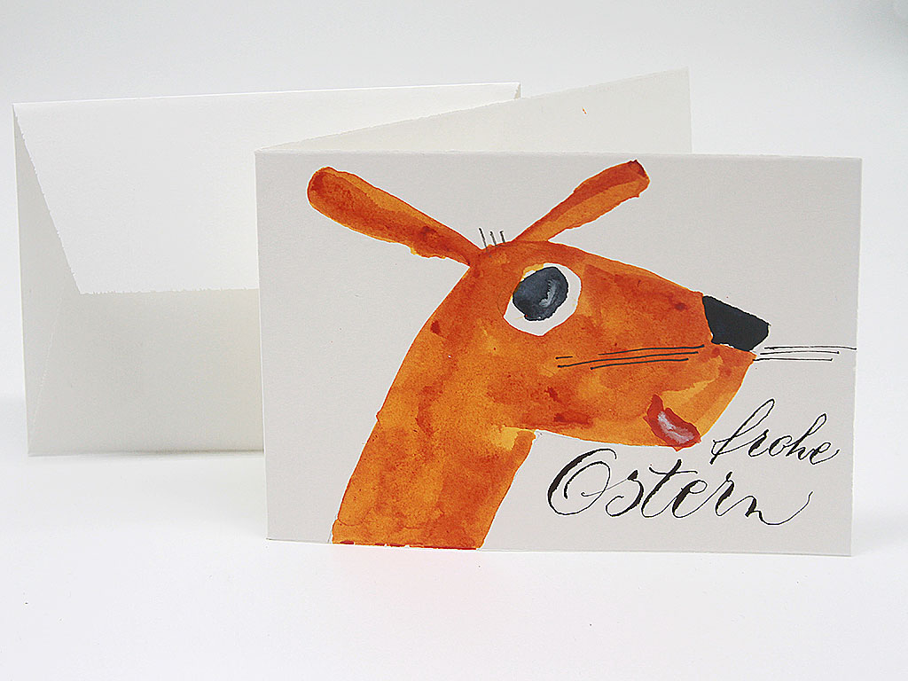 Die Klappkarte ist aus hochwertigem Büttenpapier. Dazu verschicken wir einen edlen Umschlag mit Wasserzeichen.